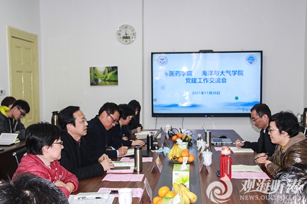本站讯 11月26日下午,中国海洋大学医药学院、海洋与大气学院党建工作交流会在地质馆召开。海洋与大气学院海洋气象学系党支部书记黄菲、副书记赵传湖,医药学院党委书记王震、学院党委委员、教工党支部及学生代表等参加会议。医药学院党委副书记、青岛海洋生物医药研究院执行院长张栋华主持会议。