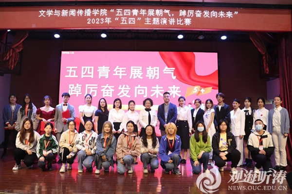 本站讯 为传承“爱国、民主、进步、科学”的五四精神,激励新时代青年主动担当作为,谱写忠诚爱国新篇章,展现良好青春风貌,5月4日下午,中国海洋大学文学与新闻传播学院(以下简称“文新学院”)在文新楼乐海堂(408室)举办“五四青年展朝气·踔厉奋发向未来”主题演讲比赛。此次演讲比赛由文新学院团委主办,文新学院大学生中国特色社会主义理论学习研究会承办。文新学院党委副书记、副院长吉晓莉,中文系副教授李军,文新学院“思想导师”、青岛市党史纪念馆馆员段明伟,团委老师李蓓、王小丹出席活动。