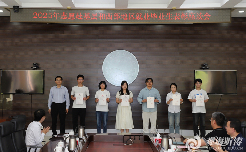 本站讯 6月17日下午,中国海洋大学2025年志愿赴基层和西部地区就业毕业生表彰座谈会在崂山校区举行,27名毕业生受到学校表彰。学校党委常委、副校长王雪鹏出席会议并为受表彰学生颁奖。