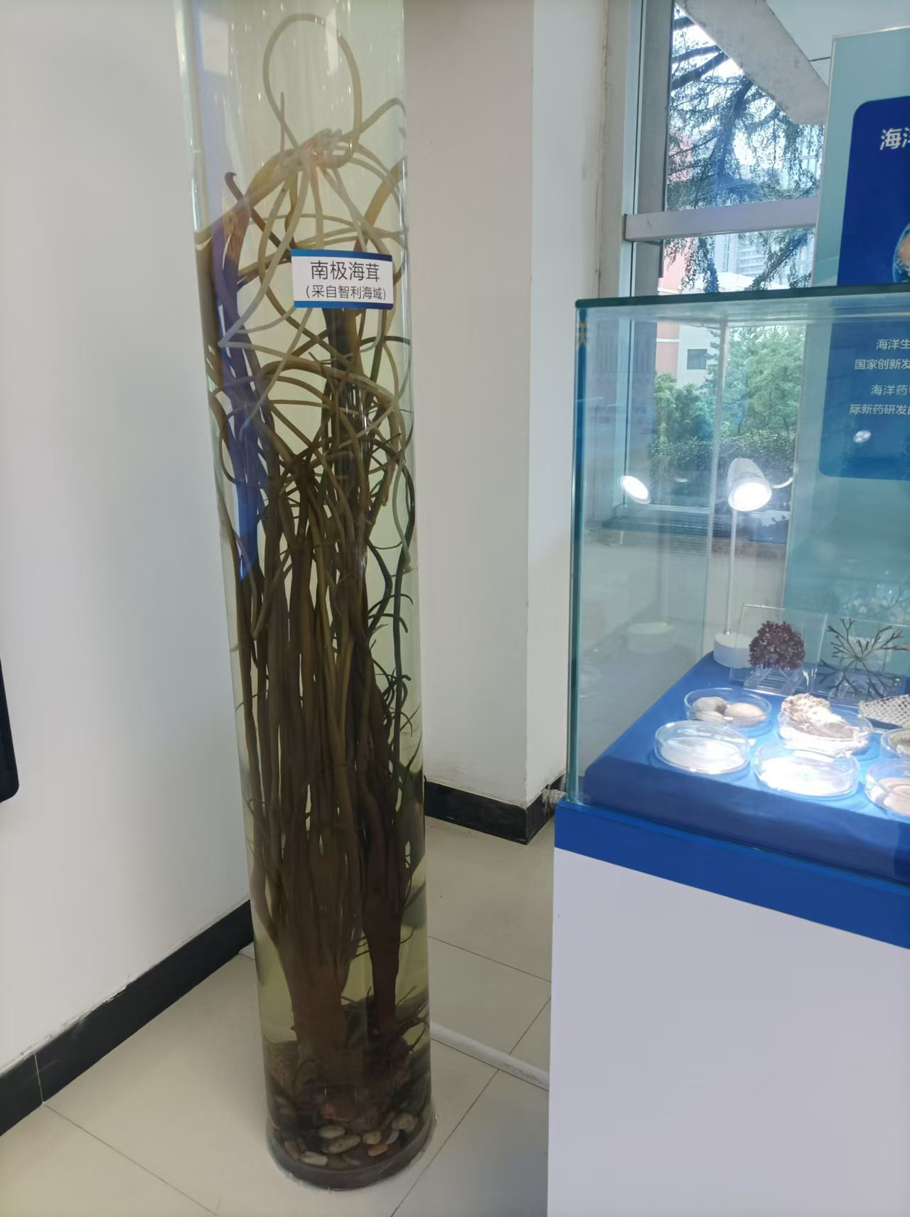 秦冲站在青岛海洋生物医药研究院的成果展示区前,指着一瓶采自智利海域的南极海茸标本,向记者介绍:“BG136正是从它身上提取出来的。”从南极海茸中提取的倍他葡聚糖与免疫细胞表面糖受体结合,可以靶向激活机体先天免疫系统,进而发挥抗肿瘤作用。“海洋生物医药研究不仅仅是海洋资源利用,也是面向未知世界的科学探索,是对海洋科技的探索,需要技术和理论创新。”该院院长、国际欧亚科学院院士杜冠华说。
