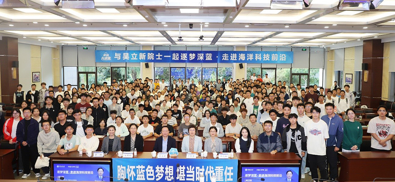 本站讯 10月16日,卓越大讲堂2025年第4期在中国海洋大学崂山校区举办。本期活动以“逐梦深蓝・走进海洋科技前沿”为主题,特邀中国科学院院士、崂山国家实验室主任、中国海洋大学副校长吴立新作专题报告。