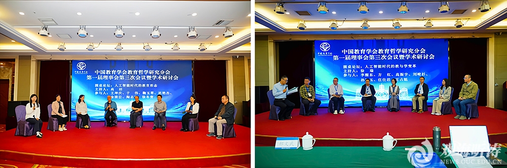 在主题报告和学术报告环节,清华大学教授石中英、陕西师范大学教授郝文武、曲阜师范大学教授高伟等15位学者分享了研究成果。会议还围绕人工智能与教育哲学的前沿课题组织了两场圆桌论坛。