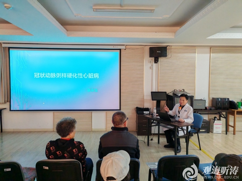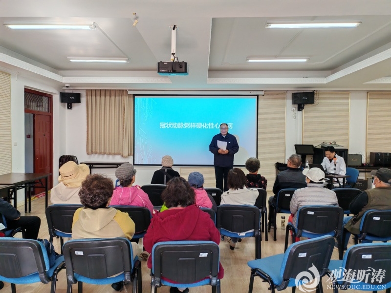 本站讯 重阳节来临之际,中国海洋大学离退休(党委)工作处精心组织敬老月系列活动,以弘扬孝亲敬老美德。10月22日上午,中国海洋大学鱼山校区离退休教职工活动室内座无虚席,由离退休(党委)工作处联合青岛瑞慈瑞城健康管理有限公司市南门诊部举办的敬老月系列活动之五在此开展,医学专家张永生主任医师带来的冠心病防治专题讲座,为到场老同志送上了一份实用的“健康大礼”。