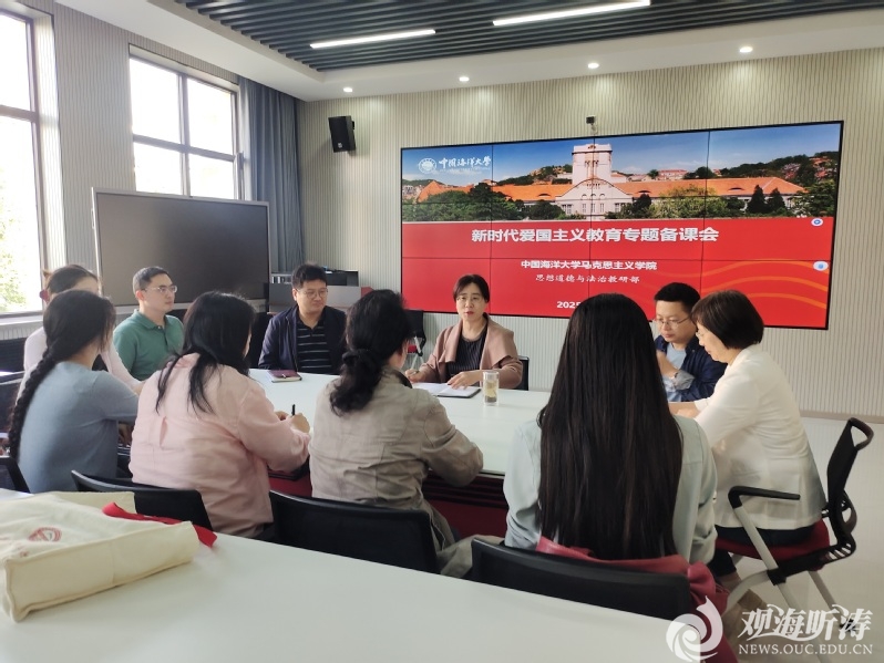 10月16日下午,中国海洋大学马克思主义学院思想道德与法治教研部召开“新时代爱国主义教育专题备课会”,围绕习近平总书记关于爱国主义教育的重要论述开展学习与备课活动。教研部主任董振娟教授主持备课会,总结教学经验,提升教学效果。爱国主义教育贯穿大中小学思政课,在高校《思想道德与法治》课程中有着重要的地位和意义。一方面,在大中小学思政课一体化的维度下开展教学,体现爱国主义教育有效衔接、整体推进的系统化教学思维模式,使青年学子不断获取新的知识营养,提升爱国主义情怀。另一方面,深入学习贯彻习近平总书记在学校百年校庆之际给海大全体师生重要回信精神,将爱国主义教育与中国海洋大学的特色和使命有机结合,贯通思政课程和课程思政,努力培养更多胸怀蓝色梦想、堪当时代重任的优秀海洋人才,为建设教育强国、海洋强国作出更大贡献。