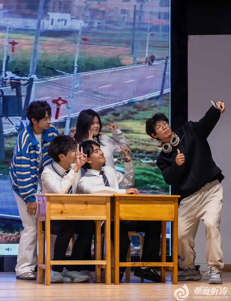 晚会的第三序章,在《陪你度过漫长岁月》的温暖旋律中缓缓展开。邱鹭、史奕涵、侯静雅、陈浚芃四位同学的声线,如同四月微凉夜晚中的暖流,清澈而深情。他们的和声层次分明,婉转悠扬,更巧妙的是,舞台穿插的微型情景剧,将校园里师生之间、同窗之间的点滴陪伴与共同成长悄然呈现。那一刻,台下许多观众的眼眸中闪烁着感同身受的光芒——原来,最长情的浪漫,就藏在这片山海之间的寻常岁月里,是师长的谆谆教诲,是挚友的并肩同行。歌声落幕,掌声如潮,那是为这份温柔陪伴响起的最好回声。