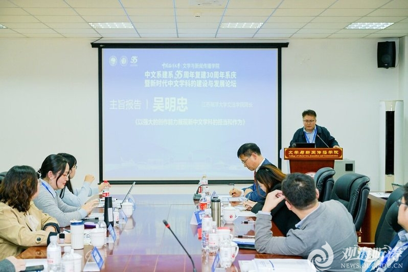 本站讯 10月25日,由中国海洋大学文科处、中国海洋大学文学与新闻传播学院主办,中国海洋大学中文系承办的“新时代中文学科的建设与发展”论坛在中国海洋大学崂山校区文新楼举行,来自全国二十余所高校的专家学者、学校相关职能部处负责人、文学与新闻传播学院中文系师生代表共200余人参加论坛。