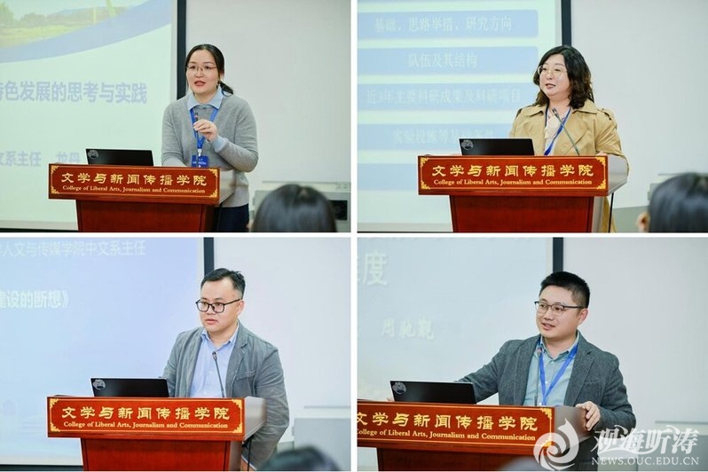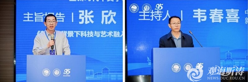 上午,论坛第一场学术报告会在文新楼408乐海堂举行,中国海洋大学文学与新闻传播学院副院长韦春喜主持。来自9所高校的学者代表依次分享学术洞见与办学经验。