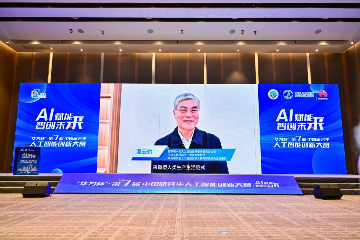 中国工程院院士、中国研究生人工智能创新大赛专家委员会主任委员潘云鹤发表视频致辞。潘云鹤院士指出,当前人工智能正在与各行各业广泛深度融合,重塑人类生产生活范式,促进生产力革命性跃迁和生产关系深层次变革,研究生是这场变革的先锋力量。“非常期待同学们在人工智能创新的大道上,坚定地向技术广度和科学深度进军,不负伟大时代,不负青春韶华!”