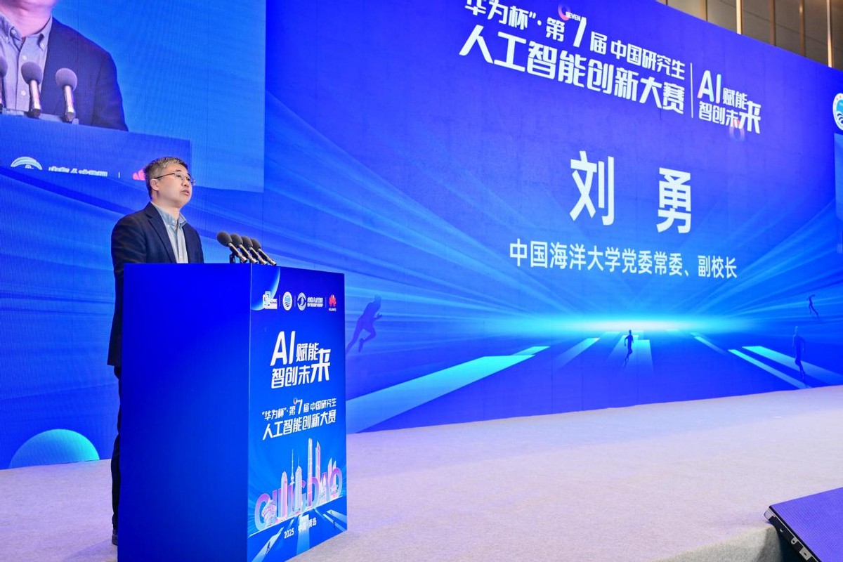 中国海洋大学党委常委、副校长刘勇对本次大赛的成功举办表示祝贺,并期望以本次大赛为契机,进一步深化各高校、科研院所与企业之间的交流合作,促进产学研用深度融合,共同构建协同创新、共生共荣的人工智能发展生态,携手培养更多能够适应和引领未来智能化时代发展的拔尖创新人才,为建设教育强国、科技强国、人才强国贡献智慧和力量。