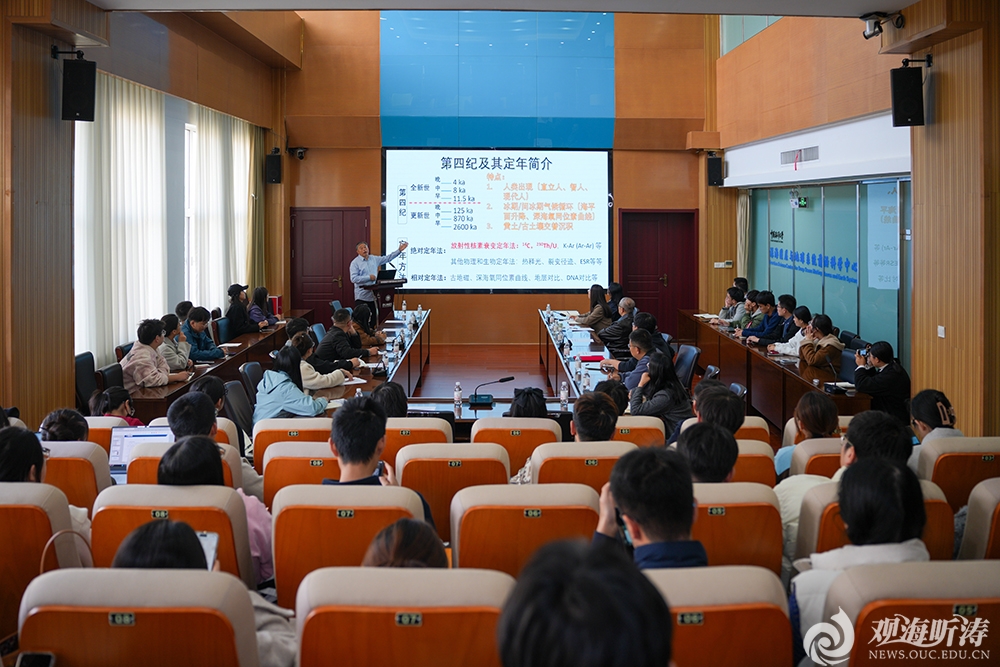 本站讯 11月13日下午,由中国海洋大学海洋化学理论与工程技术教育部重点实验室、化学化工学院主办的“实学讲堂”活动邀请到台湾大学李红春教授作题为《第四纪定年挑战与进展》的学术报告。校内外近百位师生代表齐聚海洋科技大楼前沿报告厅,共同聆听了这场学术盛宴。活动现场座无虚席,学术氛围浓厚。报告由海洋化学理论与工程技术教育部重点实验室肖晓彤教授主持。