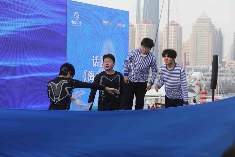 现场艺术演绎精彩纷呈,基础教学中心艺术系学生、大学生艺术团及海鸥剧社先后带来合唱《问道沧海》、声韵合诵《蓝色梦想》、话剧《海之魂》、情境叙事合唱《蓝色畅想》等节目。