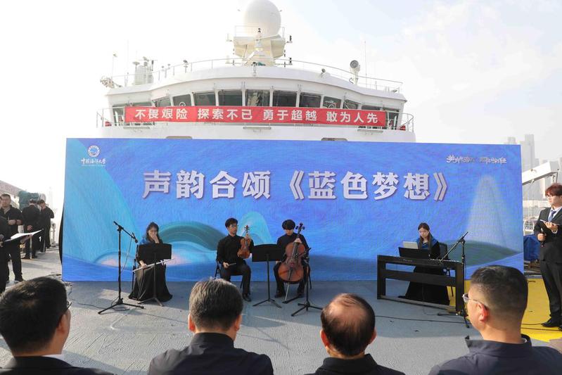 11月13日,中国海洋大学第二期“胸怀蓝色梦想 堪当时代重任”海上音乐党课在“东方红3”船上举行。本次活动以音乐为媒、以海洋为景,打造了一堂融艺术审美与党性教育于一体的沉浸式思政课。中国海洋大学党委副书记卢光志出席活动。