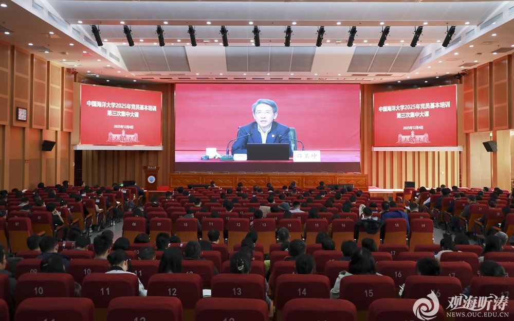 本站讯 12月4日,中国海洋大学举办党员基本培训2025年第三次集中大课,集体学习南方科技大学校长、中国科学院院士薛其坤同志讲授的辅导报告。学校党委常务副书记张静主持并讲话,山东省委教育工委学校组织处有关负责同志到会指导。全校干部师生党员在134个会场参训。