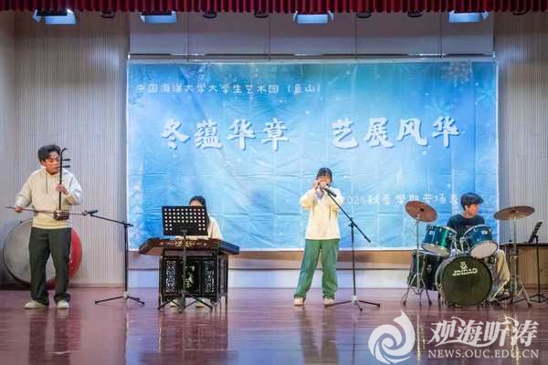 本站讯 朔风拂过枝桠,弹奏冬日的交响。青春在五线谱上舞动,倾泻希望的乐章。2025年12月7日,“冬蕴华章,艺展风华”大学生艺术团鱼山专场演出在鱼山校区六二礼堂拉开序幕。本场演出包括歌曲、器乐、舞蹈、相声、小品等多种形式,带来视觉与听觉的双重盛宴。
