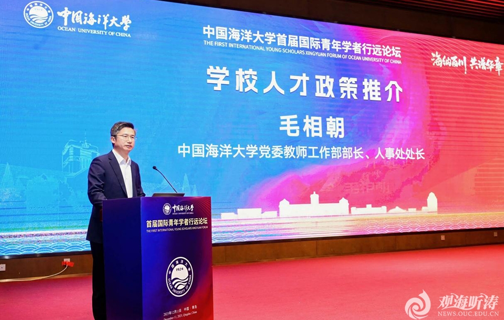 青岛市人才发展促进中心副主任严立洪作青岛市人才政策推介,向参会学者们系统介绍了青岛市最新人才政策。中国海洋大学党委教师工作部部长、人事处处长毛相朝作学校人才政策推介,从人才引育体系、人才晋升与成长通道、支持保障等方面系统解读了学校的人才引进政策和人才发展环境。