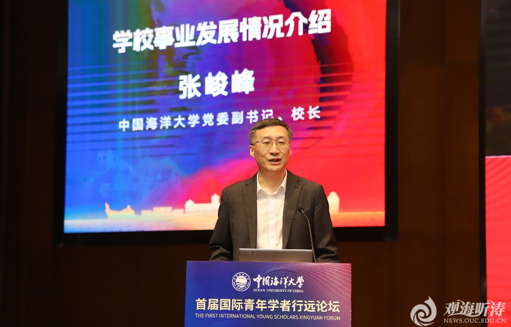 张峻峰以《海聚英才 创享未来》为题作学校事业发展情况介绍,向参会学者们全面介绍了学校百年办学底蕴、蓬勃发展现状,以及近年来人才队伍建设情况和支持青年人才成长成才有关举措成效。他指出,学校深入贯彻落实习近平总书记重要回信精神,着力强化新时代人才强校战略,大力实施“蓝色梦想铸魂强师计划”,加大人才引育力度,巩固和提升世界重要海洋人才中心和创新高地。他强调,学校无比重视人才、渴求人才,为广大青年才俊搭建了施展才能和干事创业的广阔舞台,诚邀海内外青年学者加盟,携手共筑教育强国、海洋强国梦。
