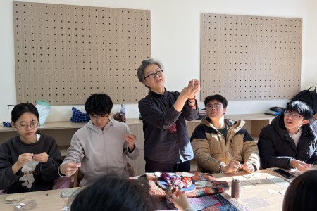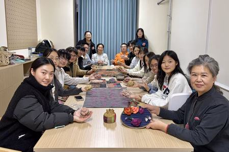 本站讯 七彩棉丝化锦云,一针一线承古韵。中国传统女红不仅是纤纤巧手的日常技艺,更是古人生活智慧与审美艺术的沉淀。为弘扬优秀传统文化,传承与创新非物质文化遗产,培养拔尖学生家国情怀,12月11日下午,学院有幸邀请到非遗盖氏女红技艺传承人、青岛市非遗保护传承发展促进会手工艺专委会主任、市北手造工匠盖如霞老师,带领崇本学子手工缝制青岛市花——耐冬花,在一针一线中感受传统技艺的深厚底蕴与时代创新活力。