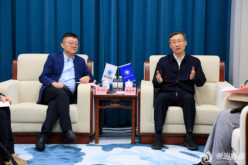 张峻峰对华卫琦一行来校调研表示欢迎,简要介绍了学校的基本情况。他指出,万华是中国最大的高分子材料企业,学校高度重视与万华的合作,前期双方在人才、科技、就业等方面开展了深入合作。当前学校正深入贯彻落实习近平总书记重要回信精神,希望双方建立全面合作机制,围绕海洋材料领域联合开展人才培养、科学研究、平台建设等,共同为海洋强国、科技强国建设作出更大贡献。