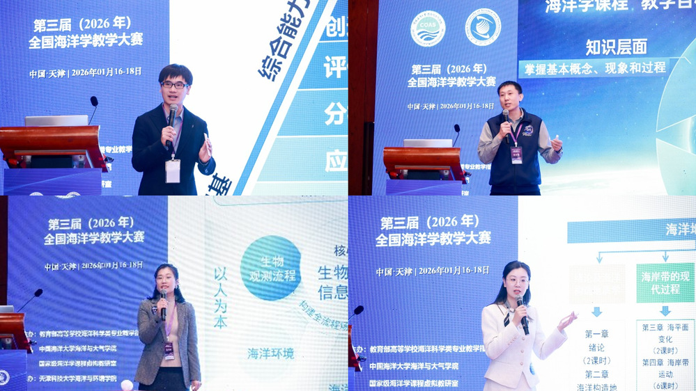 本站讯 1月16日至18日,第三届(2026年)全国海洋学教学大赛在天津举办。本届大赛由教育部高等学校海洋科学类专业教学指导委员会、中国海洋大学海洋与大气学院和国家级海洋学课程虚拟教研室联合主办,天津科技大学海洋与环境学院承办。教育部高等学校海洋科学类专业教学指导委员会副主任陈敏,教育部虚拟教研室地学类协作组组长郑祥民,天津科技大学副校长高发明出席开幕式并致辞。