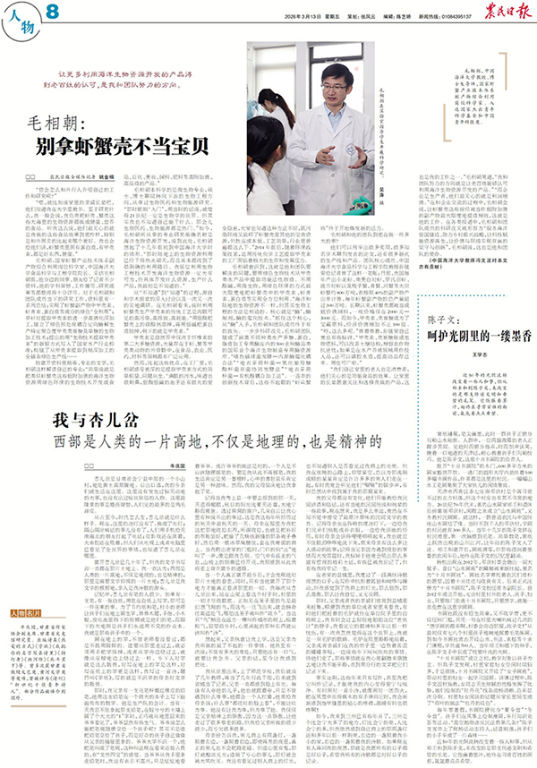 新闻链接:【农民日报】毛相朝:别拿虾蟹壳不当宝贝