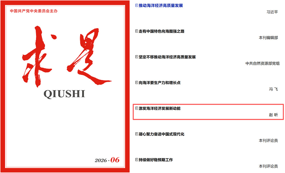 本站讯 3月16日,中国海洋大学经济学院院长赵昕教授在《求是》2026年第6期发表题为《激发海洋经济发展新动能》的理论文章。