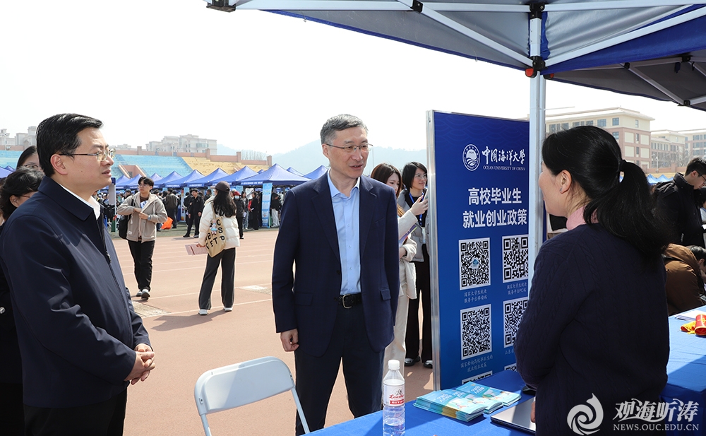 本站讯 3月25日,中国海洋大学2026届毕业生春季大型供需见面会在崂山校区体育场举行。校长张峻峰、副校长王雪鹏到场调研指导。