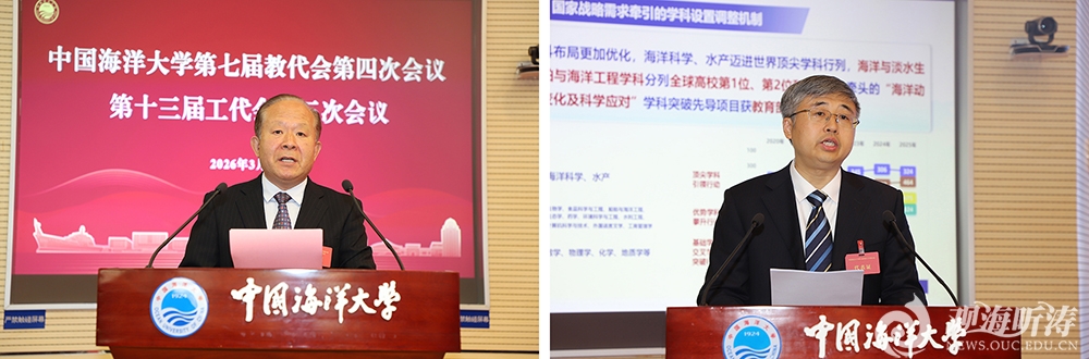 本站讯 3月26日,中国海洋大学第七届教职工代表大会第四次会议、第十三届工会会员代表大会第三次会议在崂山校区召开。学校党委书记李明出席会议并讲话,校长张峻峰作学校工作报告。