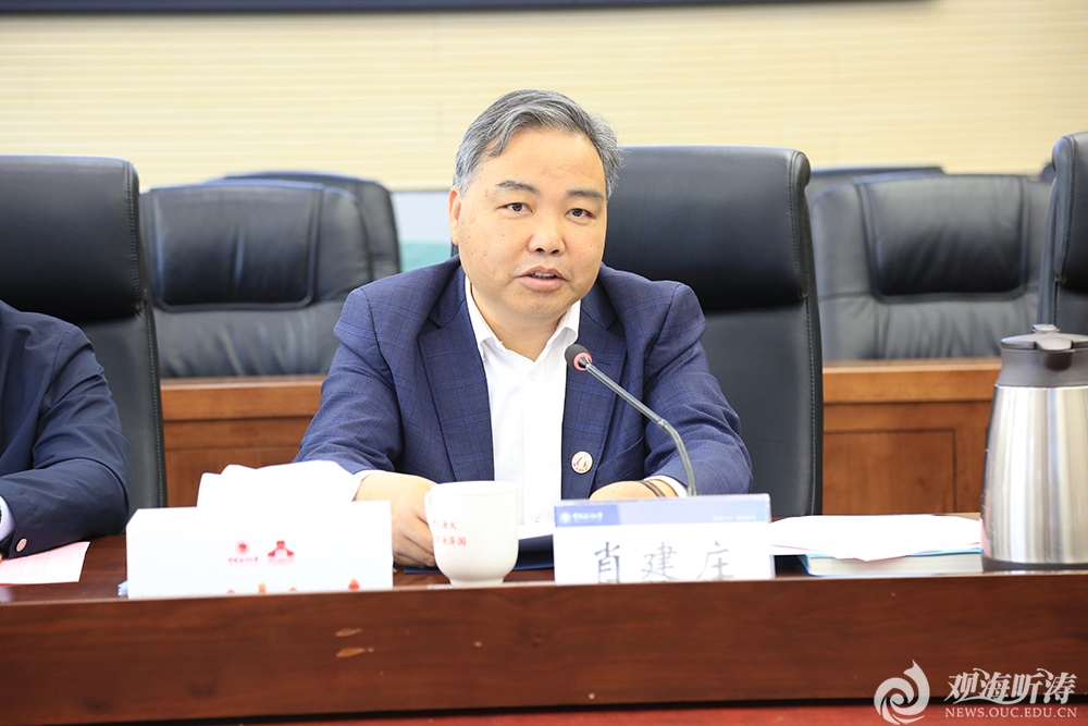 张峻峰对肖建庄一行表示欢迎,并介绍了学校近期事业发展情况。他指出,习近平总书记高度重视海洋强国建设,对中国海洋大学深切关怀、寄予厚望、委以重任。学校正在深入贯彻落实习近平总书记重要讲话和重要回信精神,深化落实“5135”发展战略,聚力打造海洋经济高质量发展的坚实支撑、先导力量、战略引擎。他表示,广西大学学科特色鲜明、发展势头强劲。两校均处于加快发展的历史节点,希望双方以此次交流为契机,面向国家重大战略需求,充分发挥各自优势,在学科建设、原创性引领性科技攻关、面向东盟的国际合作等方面深化务实合作,共同为建设教育强国、海洋强国作出新的更大贡献。