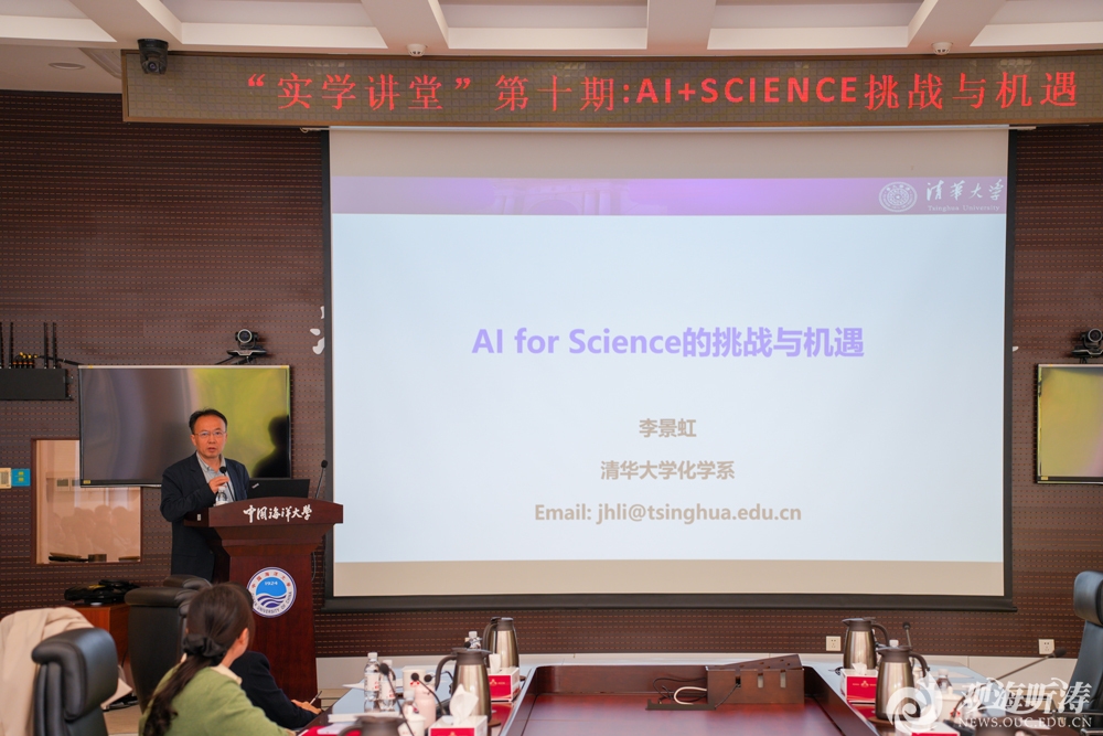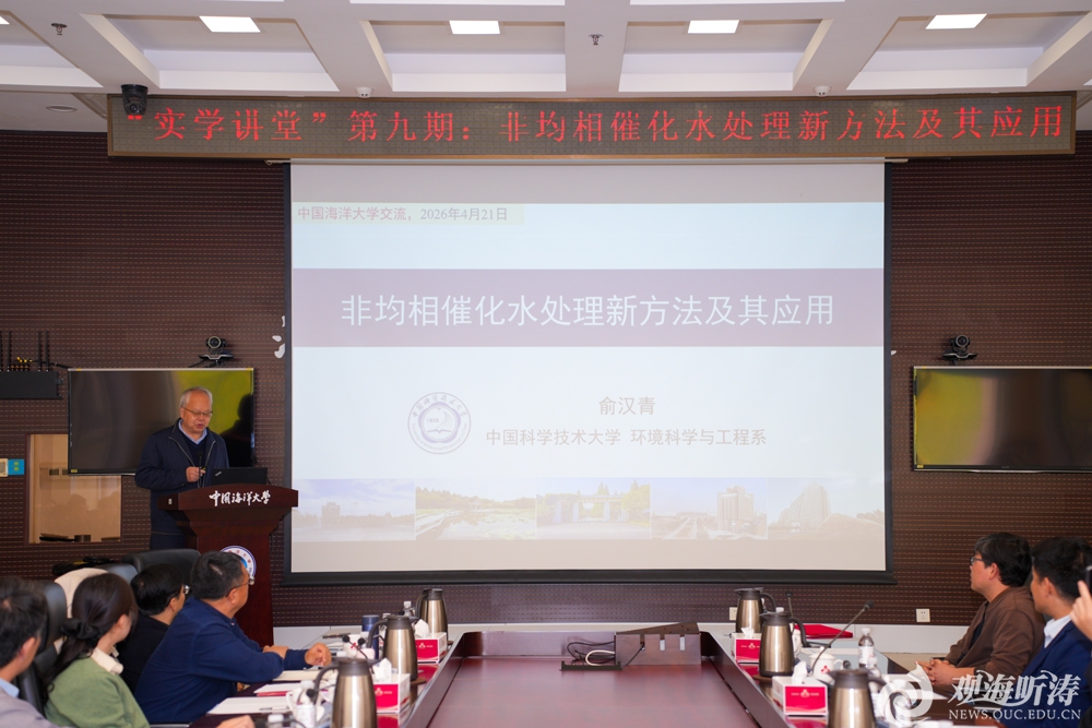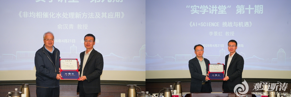 本站讯 4月21日上午,由中国海洋大学海洋化学理论与工程技术教育部重点实验室、化学化工学院主办的“实学讲堂”第九期与第十期活动在中国海洋大学图书馆第一会议室接续举行。活动特邀中国工程院院士、中国科学技术大学俞汉青教授,中国科学院院士、清华大学李景虹教授作专题学术报告,为全校师生带来两场高水平学术盛宴。两场报告分别由海洋化学理论与工程技术教育部重点实验室副主任包锐教授、化学化工学院院长李先国教授主持。