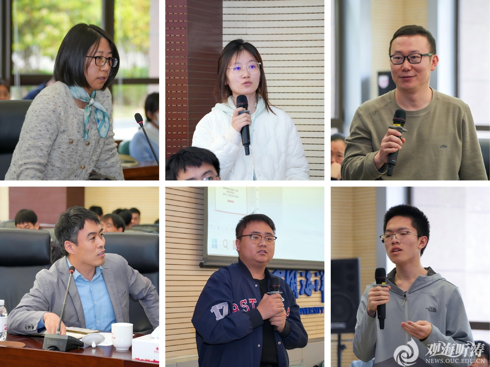 在互动交流环节,与会师生分别围绕非均相催化材料制备、反应机理与工程化应用,以及AI平台工具、模型可解释性、人与AI协同探索客观规律等问题,与俞汉青院士、李景虹院士展开深入探讨。两位院士逐一细致解答,既分享了各自研究领域的前沿思考与实践经验,也强调要理性看待技术发展的阶段性与局限性。两场互动交流学术氛围浓厚,为在场师生带来了深刻启发。
