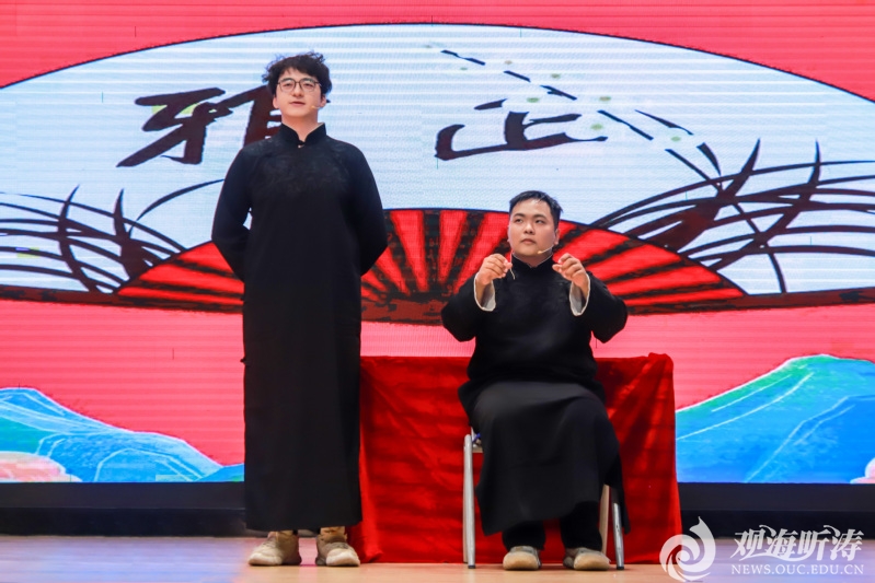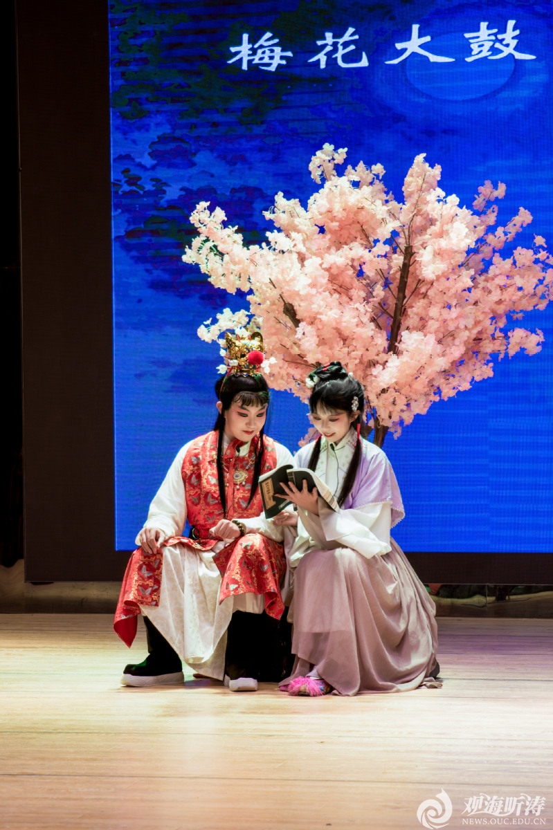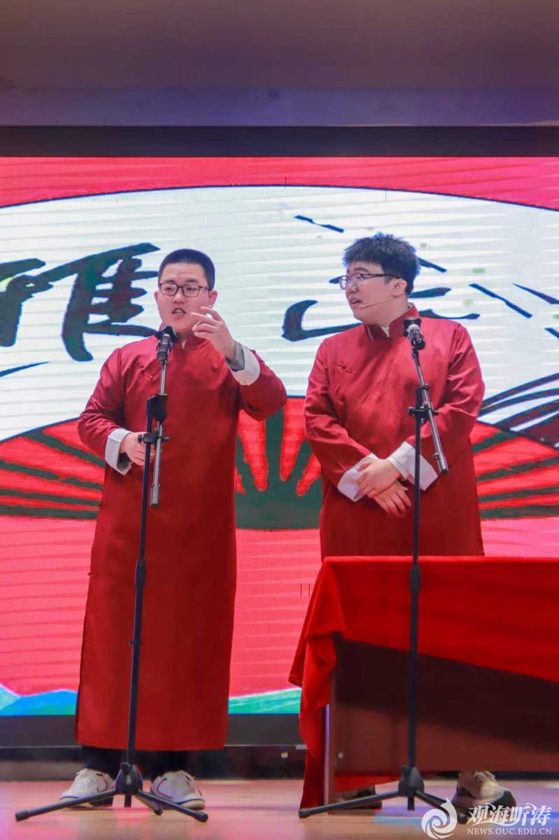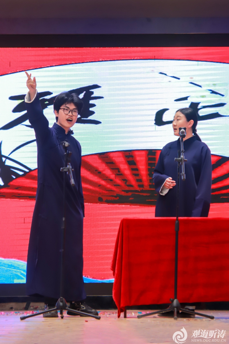 本站讯 4月25日晚,由共青团中国海洋大学委员会主办、中国海洋大学生艺术团承办的“大学生艺术团星光艺术节‘邮点欢喜’曲艺专场”在大学生活动中心进行。此次演出涵盖小品、戏曲、相声和越剧大鼓。在静谧的夜里,展厅里回荡着欢快的鼓点,活泼有趣的曲目依次登场。这方欢声尚未落定,那厢笑语又起,满场欢喜“邮”进了观众心里。