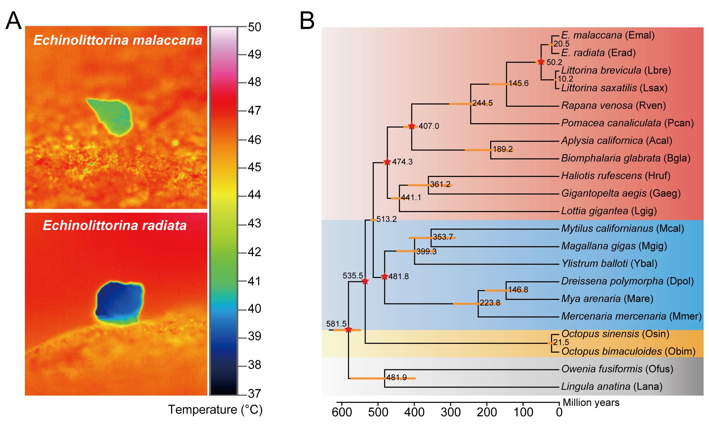 本站讯近日,中国海洋大学水产学院、海水养殖教育部重点实验室董云伟教授团队等在顶尖期刊Science China Life Sciences(中国科学: 生命科学)上发表了题为“Hexokinase Expansion in Thermophilic Snails Supports Extreme Heat Tolerance”(己糖激酶家族扩张是潮间带滨螺高温适应的重要机制)的研究论文。全球变暖背景下,揭示生物应对极端高温的适应机制是当前生物学的重要科学问题;而结节滨螺属(Echinolittorina)物种为研究这一问题提供了理想模型。这些生活于潮间带高潮区的小型贝类(成体大小通常不足一厘米)是目前已知耐热能力最强的动物类群之一:为应对栖息地内严酷的高温环境,它们演化出了极强的耐热性,致死温度可高达55°C。然...